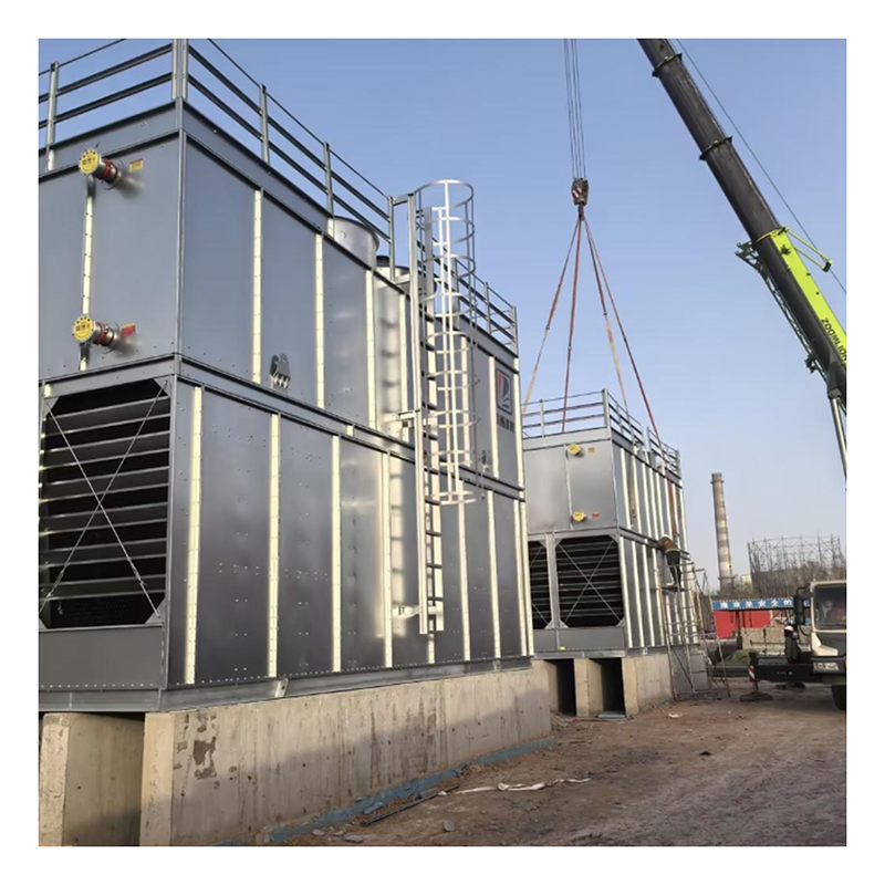 O painel da torre é feito de aço, a estrutura da torre é feita de material galvanizado por imersão a quente de alta resistência, a panela de água é feita de material galvanizado por imersão pesada Z700 e a bobina de troca térmica é feita de aço inoxidável. O desempenho anticorrosão geral do equipamento é superior e os custos de uso e manutenção são baixos.
