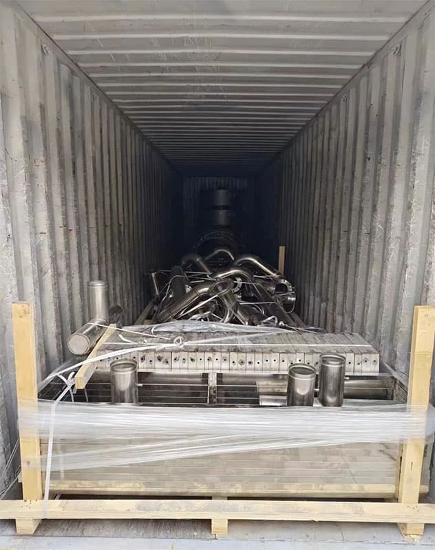 Requisitos de materiales: La carcasa y el marco se construyeron con acero inoxidable SUS304 de 3-5 mm de espesor, y el intercambiador de calor se construyó con acero inoxidable 316L engrosado. Todas las tuberías fueron de acero inoxidable 304. Todos los componentes, como la sala de bombas integrada, también se construyeron con acero inoxidable 304. La barandilla superior de la torre requería una señal de advertencia con patrón de cebra.